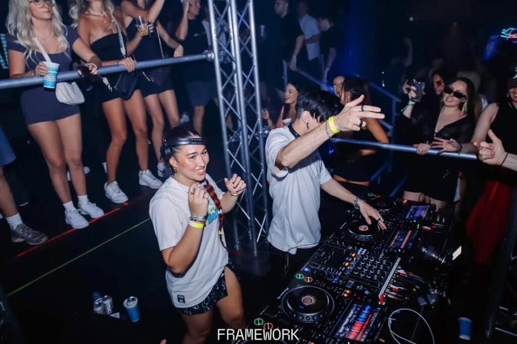 The first was a massive milestone: his first festival, playing to 10,000 people. The setup was incredibly raw… just a table with decks rather than a proper booth, leaving him feeling exposed. “It honestly felt like a dream,” he recalls. “I was playing a sparkly future bass Justin Bieber remix while fireworks were going off above, and it just felt like a really special shared moment”.